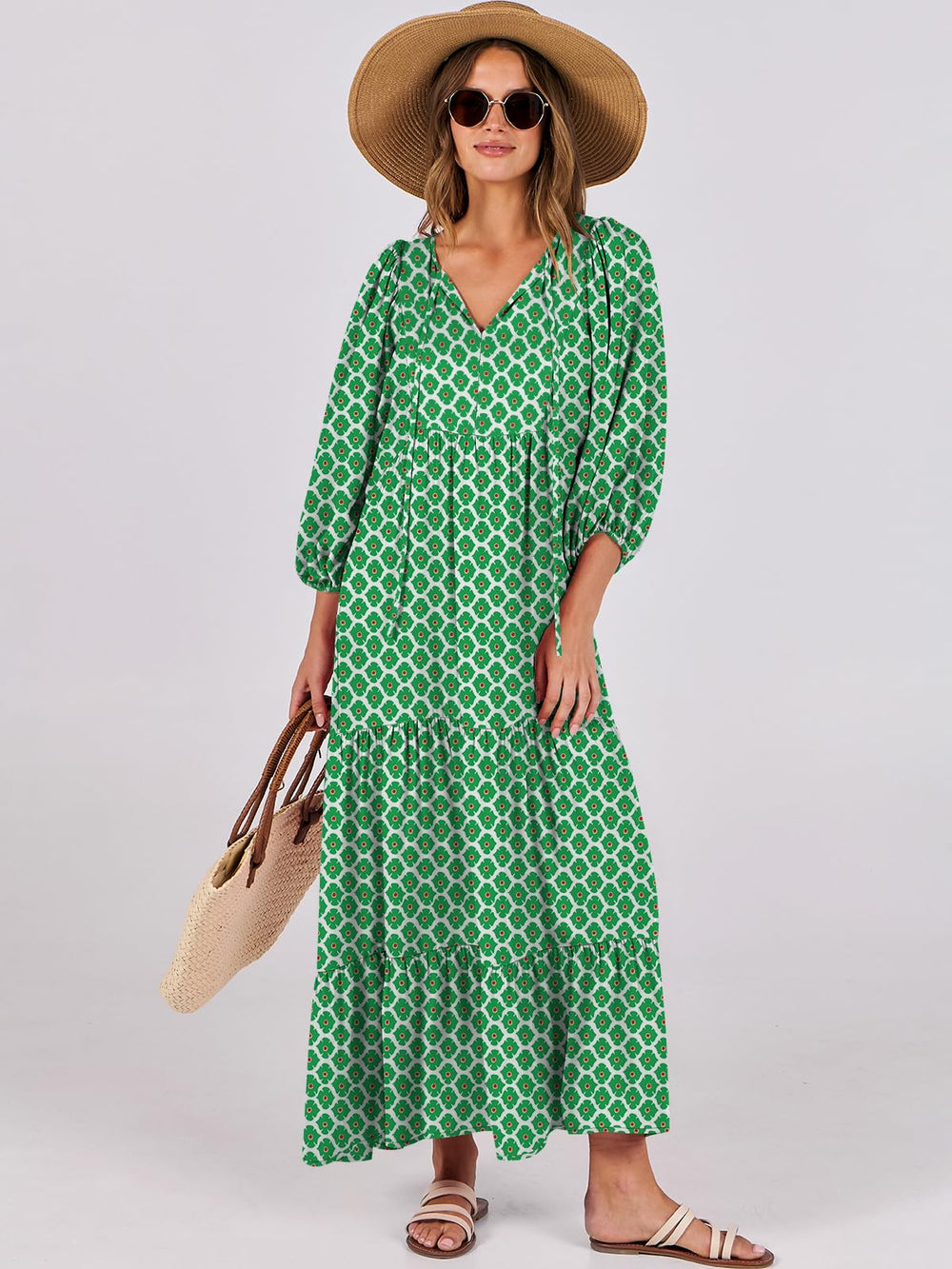 ANRABESS Women's Boho Floral V-Neck Maxi Dress