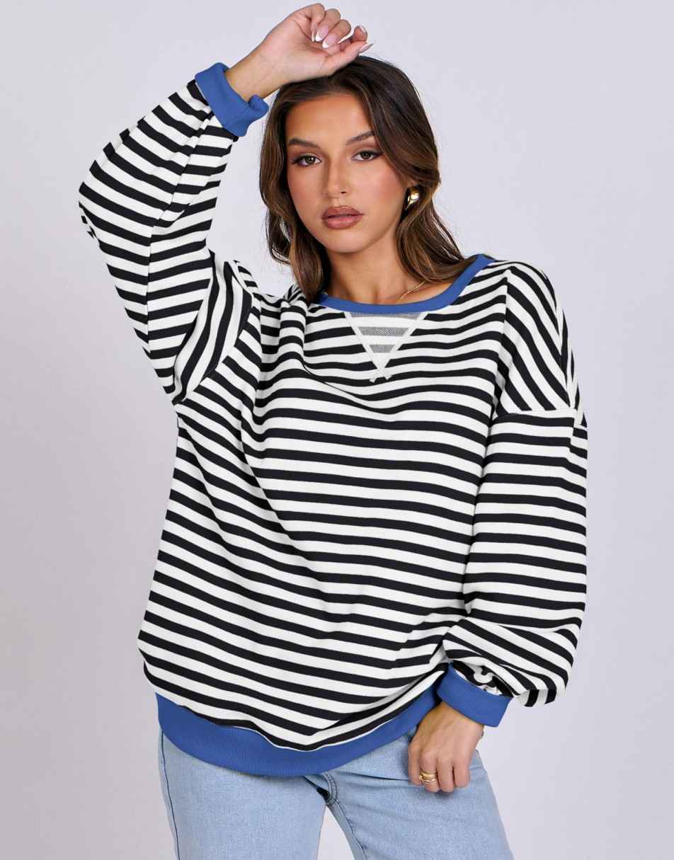 ANRABESS Women's Striped Oversized Long Sleeve Sweatshirt