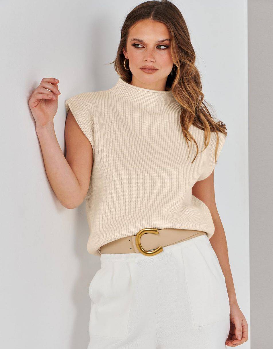 ANRABESS Women's Mock Neck Sleeveless Sweater Vest