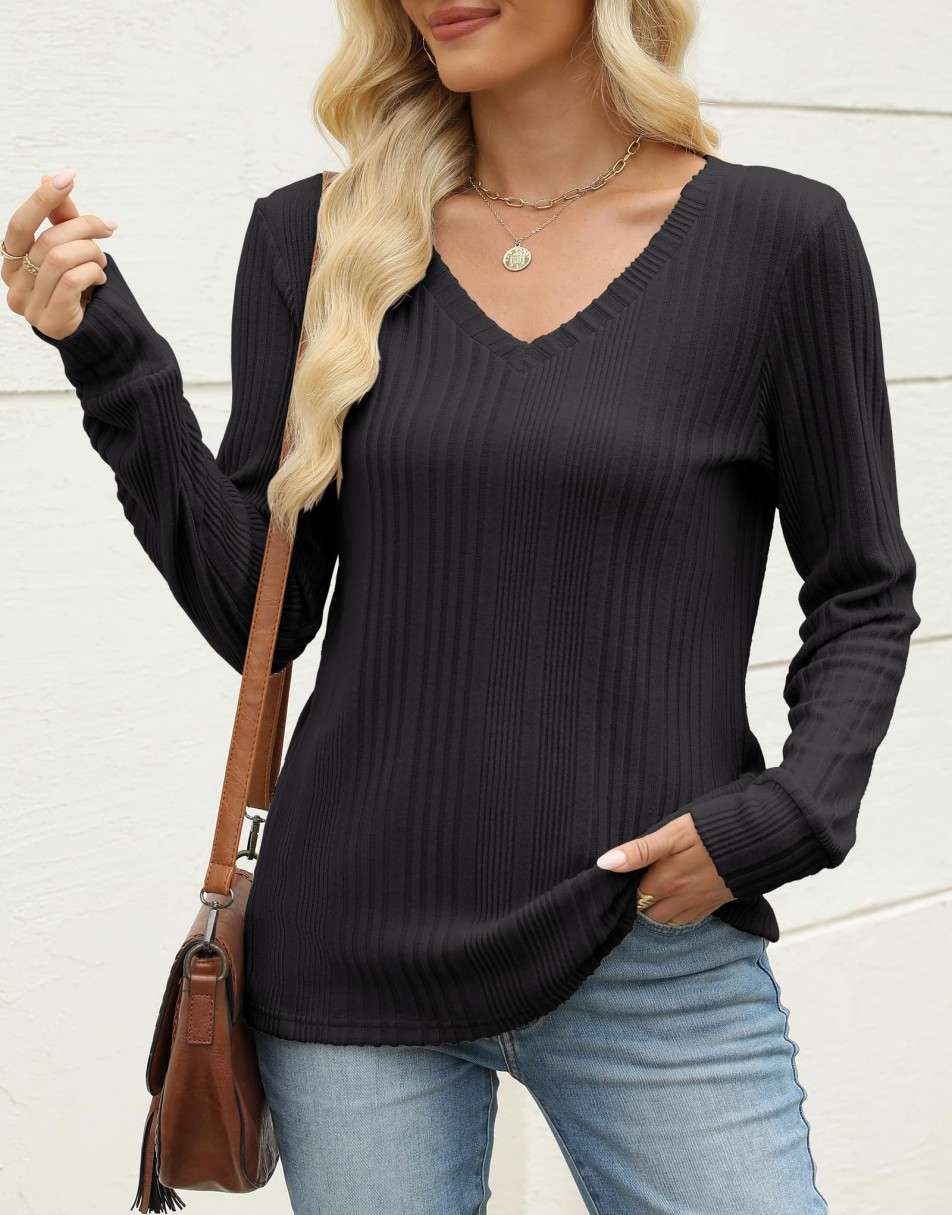 ANRABESS Women's Lightweight Ribbed V-Neck Tunic