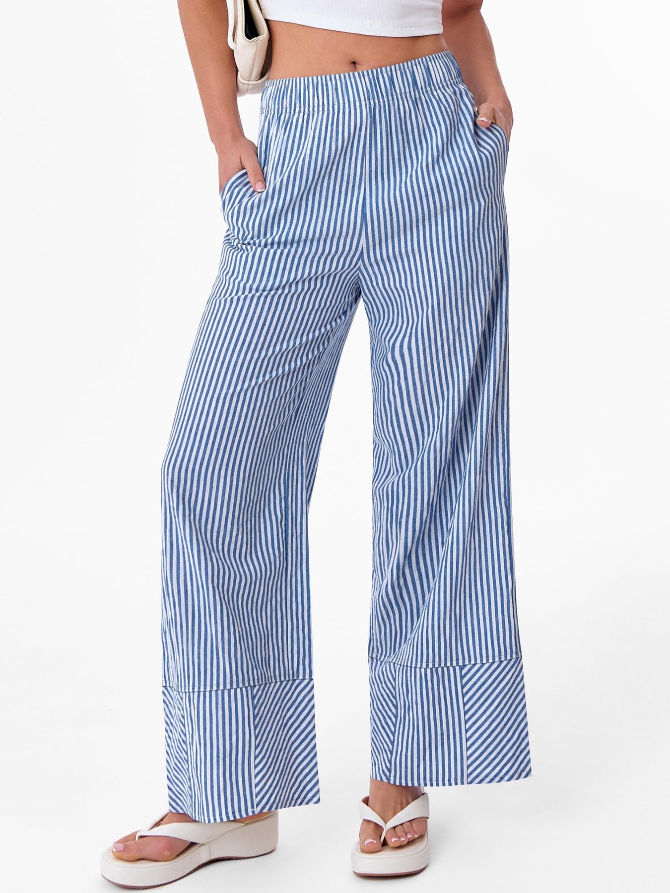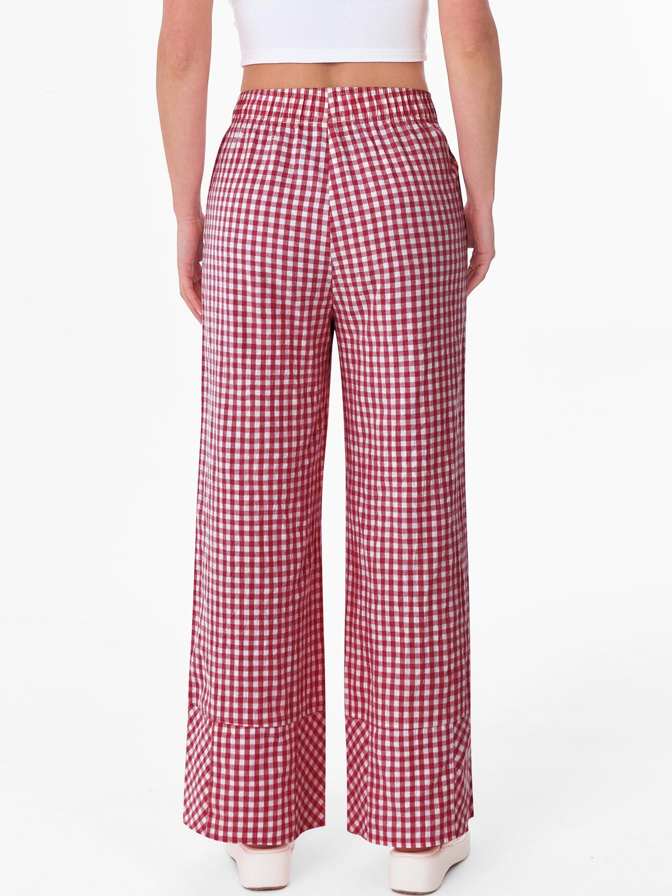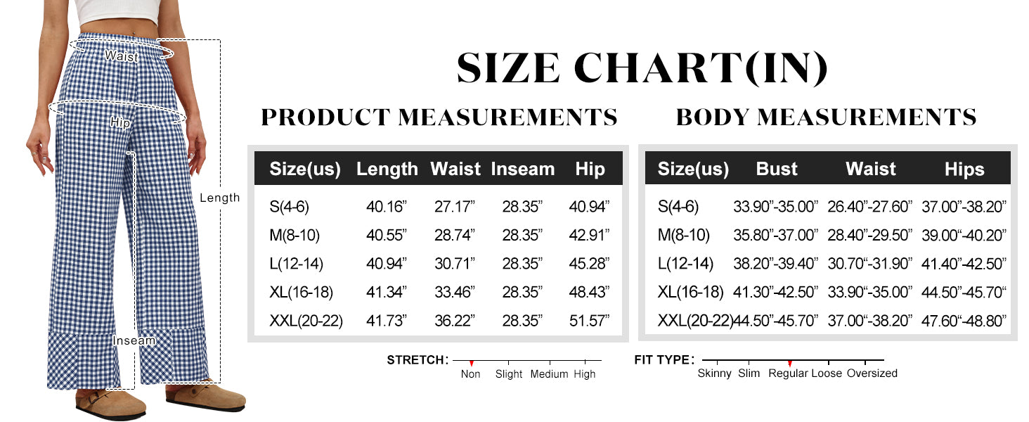 • Features - Womens Gingham Striped Pants, lounge trousers with pockets, plaid & stripe design, diagonal striped cuffs, elastic waist, soft, lightweight and breathable. The wide leg flowy pants woman perfect for daily wear, home, workout, beach, park, travel in summer and fall.