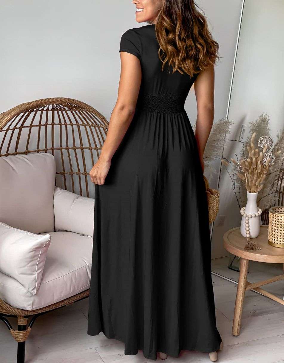 ANRABESS Deep V Neck Short Sleeve Slit Maxi Evening Dress