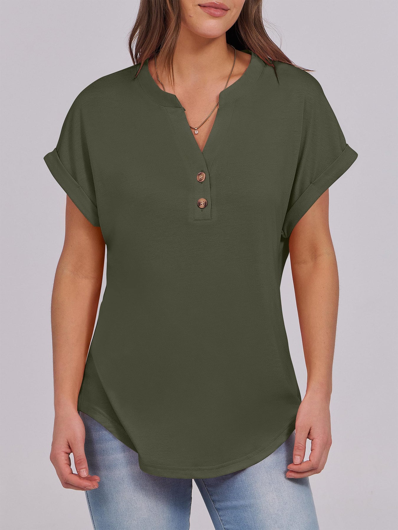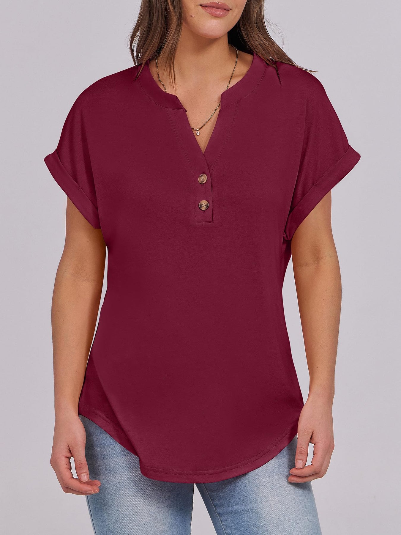 ANRABESS Womens Short Sleeve Henley Tops V Neck Dressy Casual Blouses Summer Trendy Tee Shirts 2025 Vacation Fashion Clothes