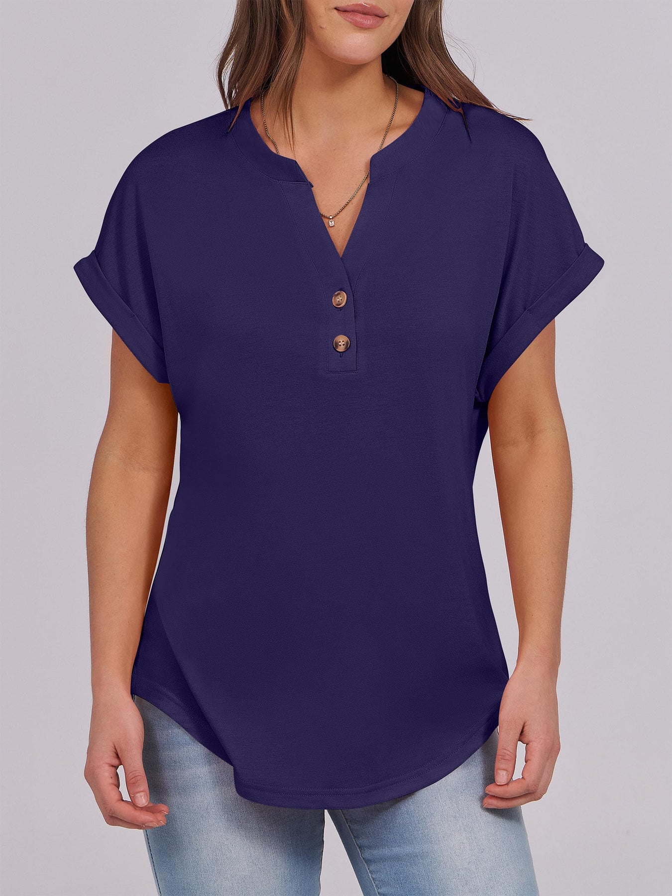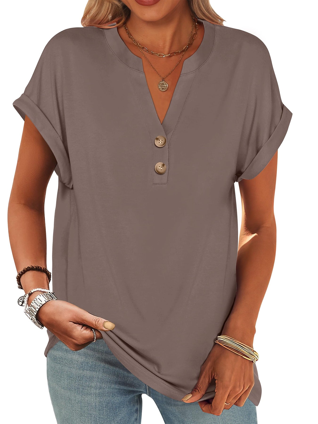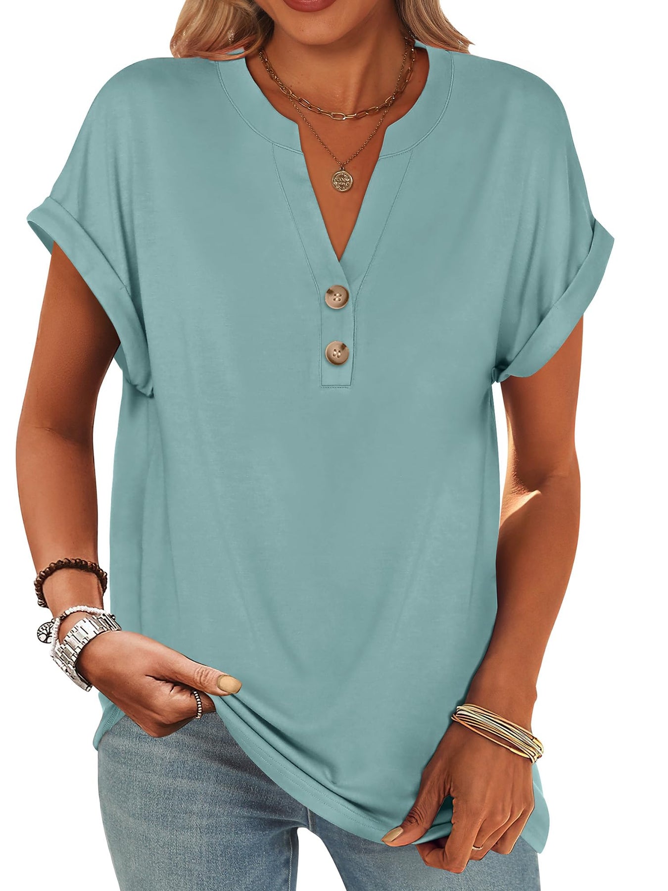 • Designs: The summer shirts designed with short sleeve, henley v neckline with buttons, casual loose fit, tunic length, basic tees.