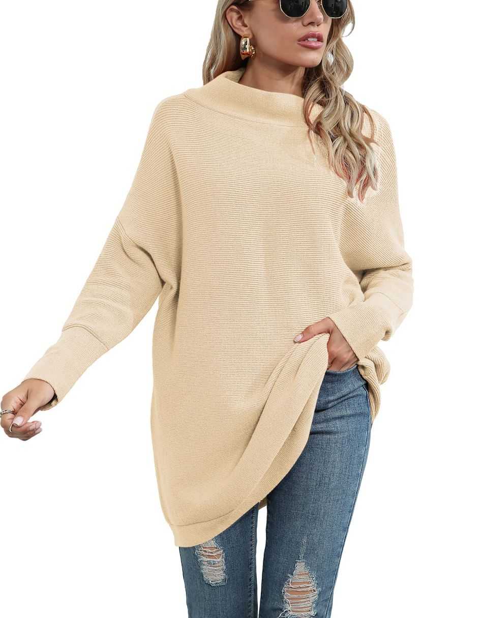 ANRABESS Batwing Sleeve Turtleneck Loose Tunic Pullover