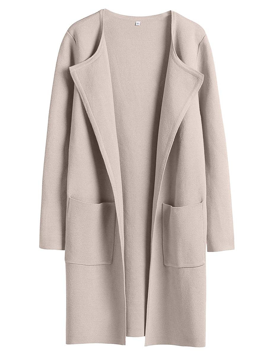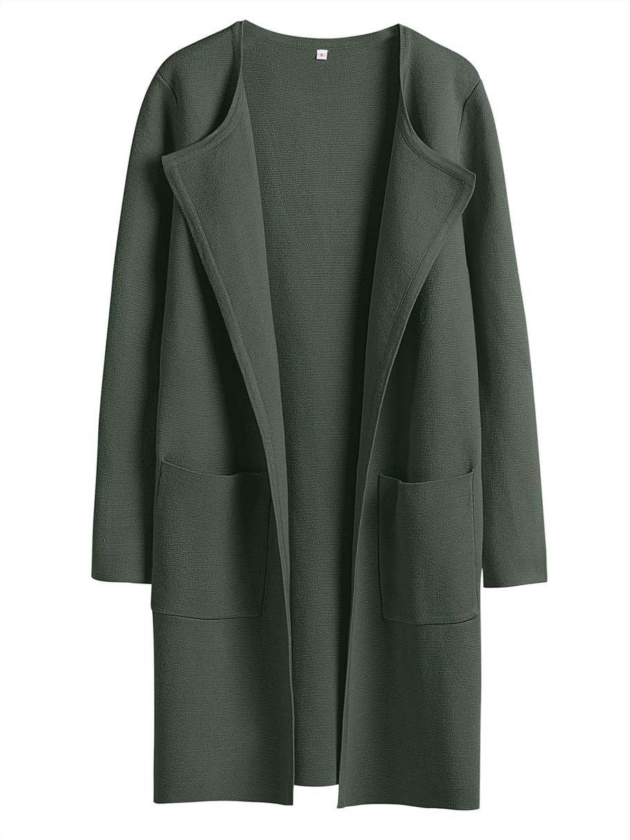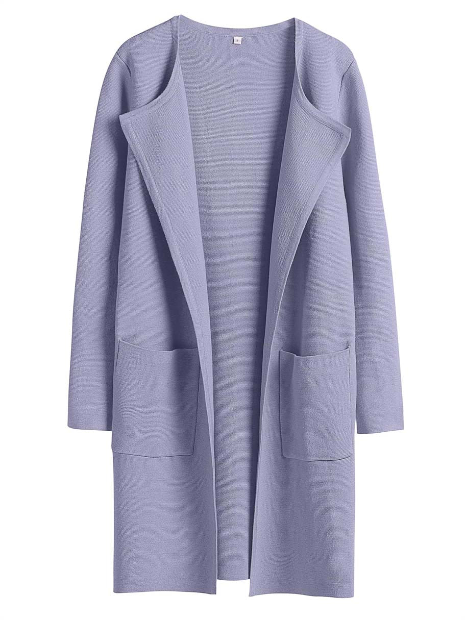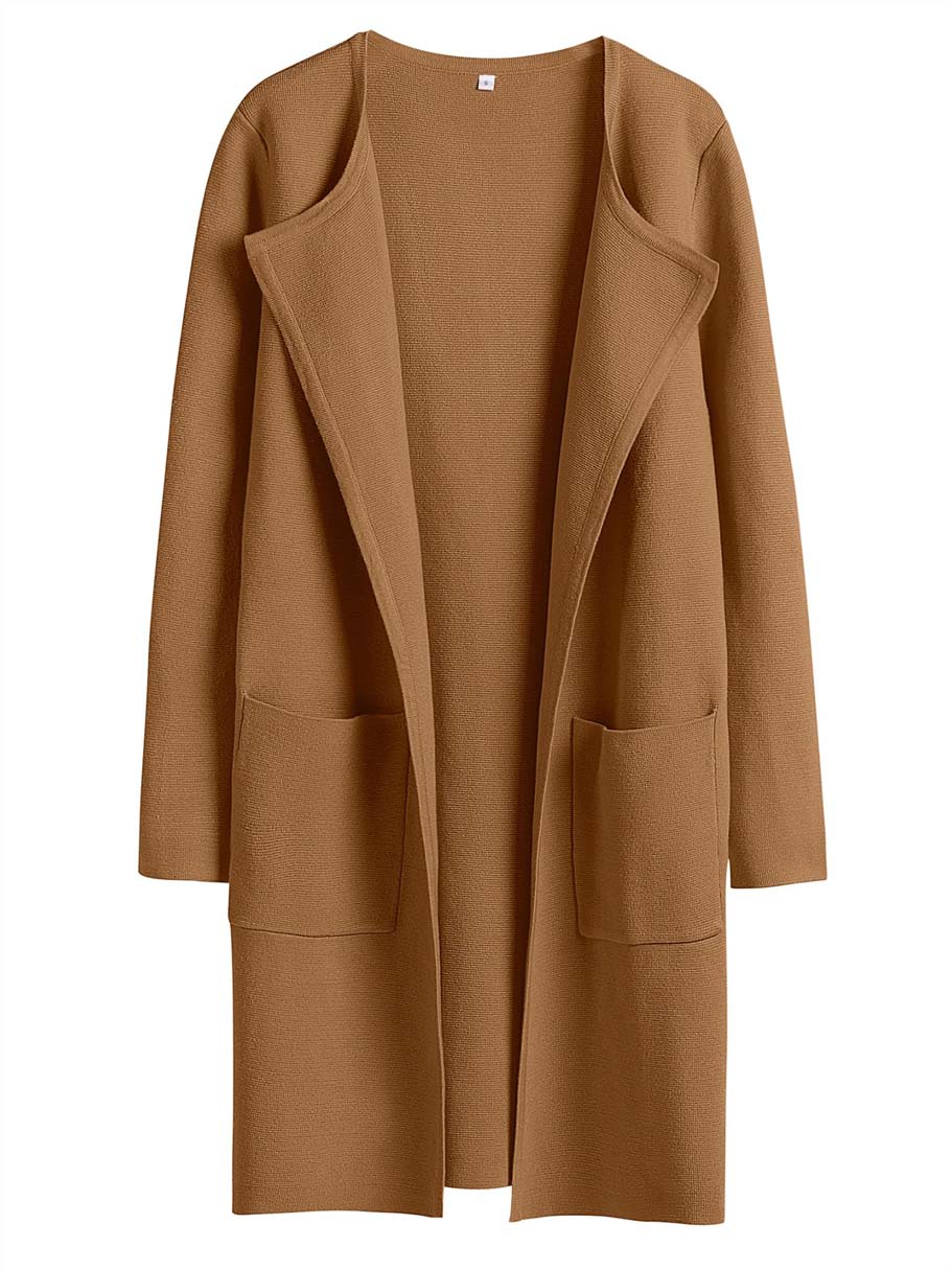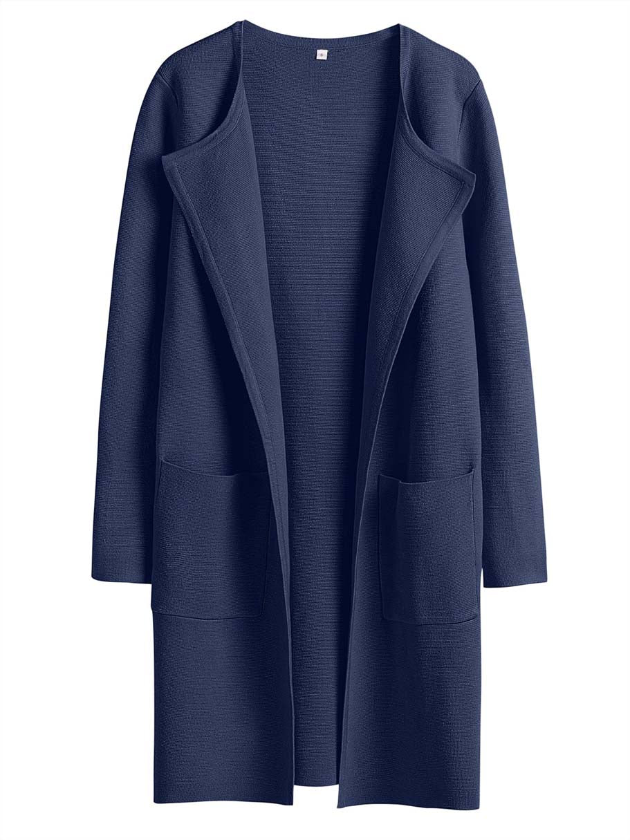 • Features - Open front, With Pockets. Lapel Neckline. Knit fabric provides flexibility. Not lined. Hand wash / Do Not Bleach / Dry Flat / Do not iron.