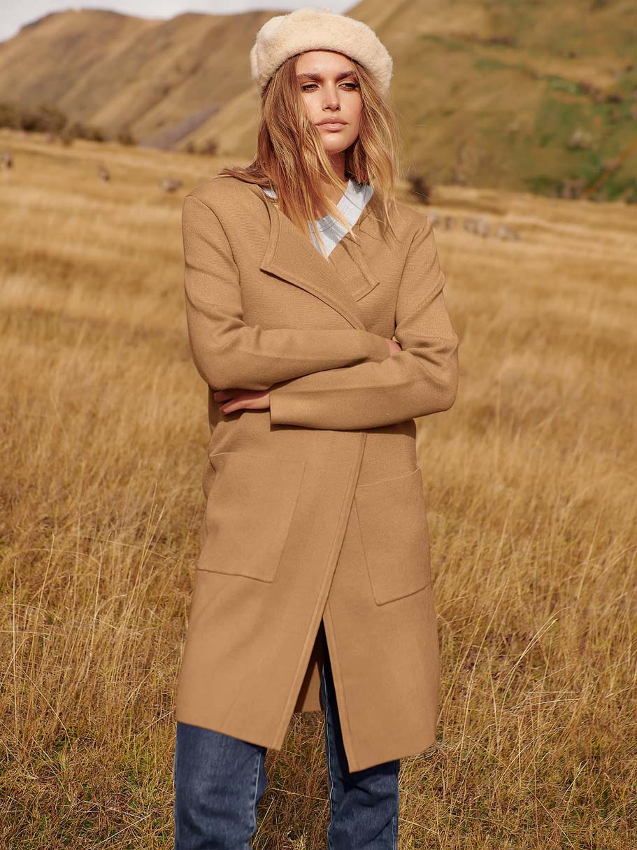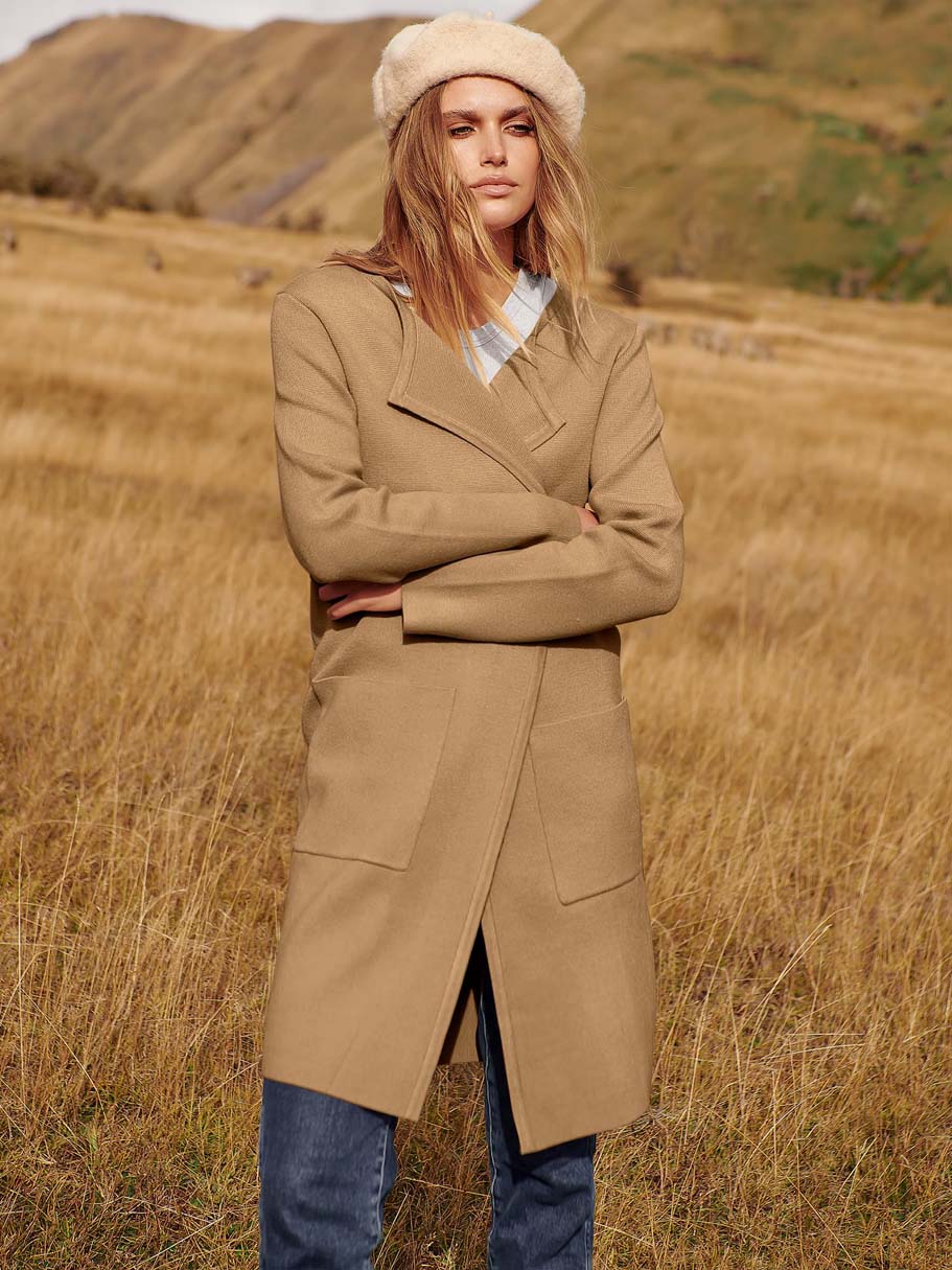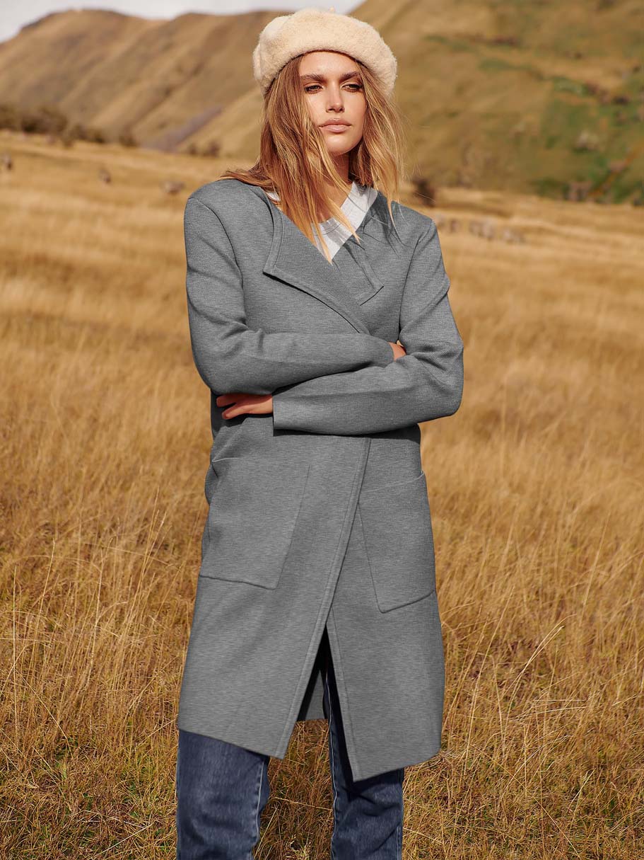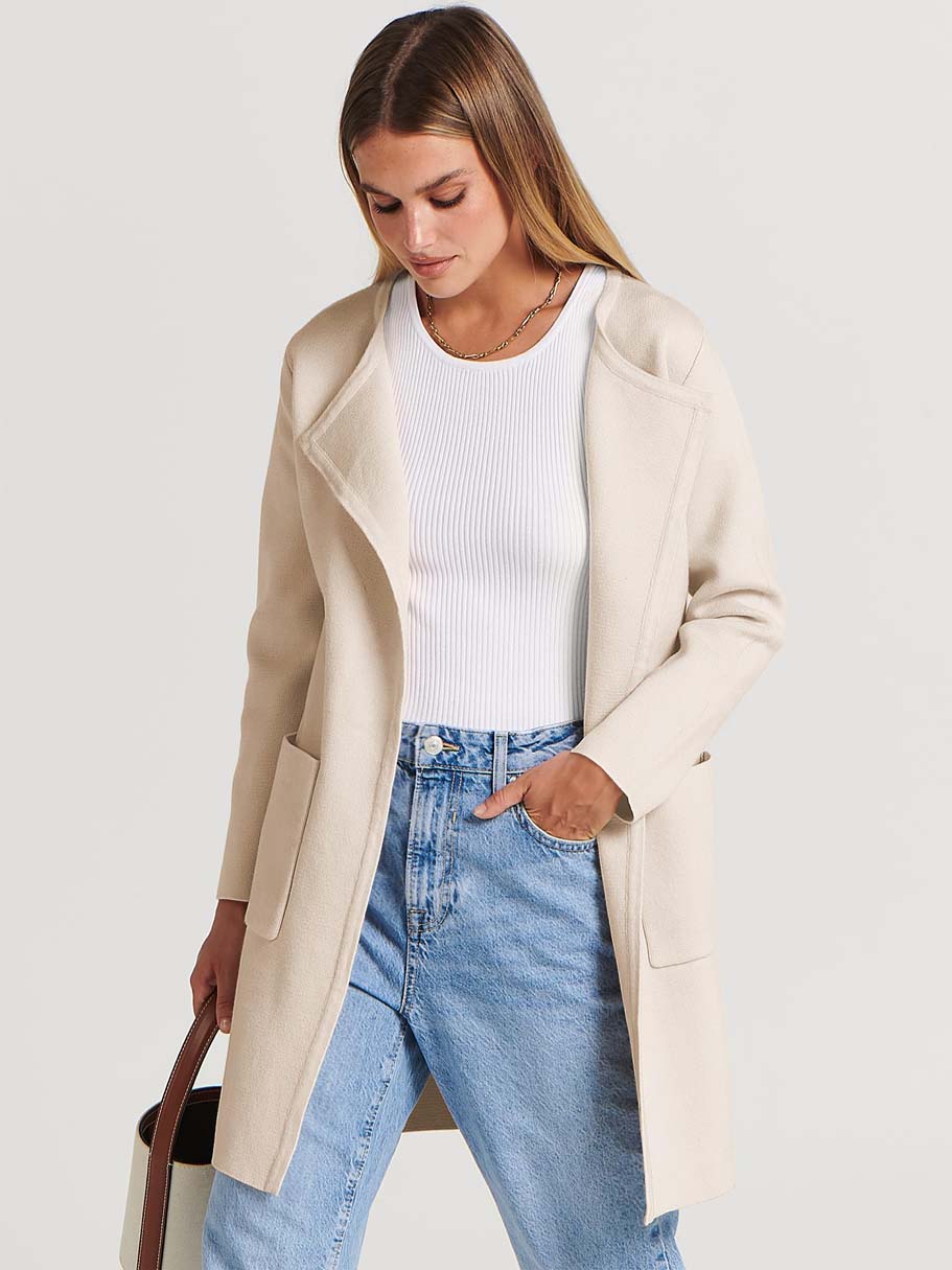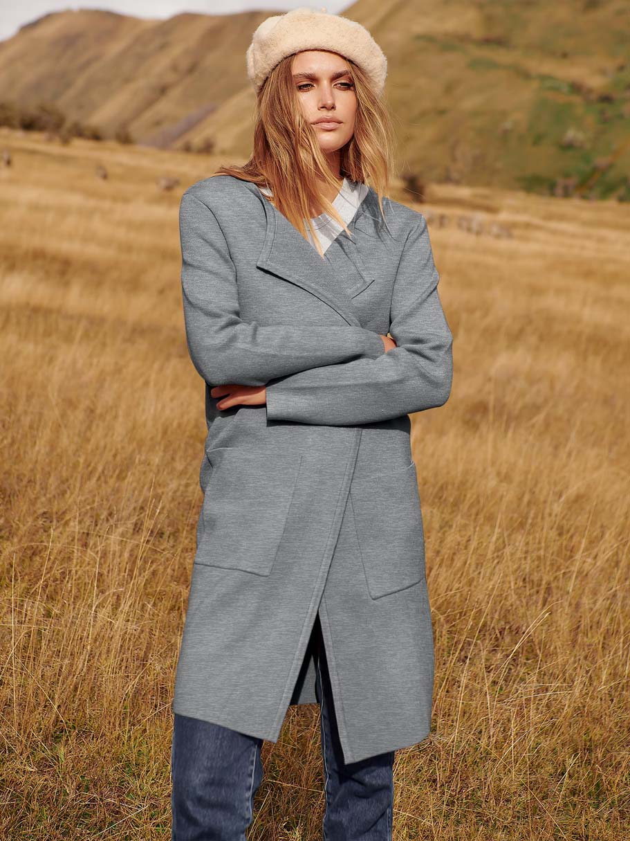 • Features - Open front, With Pockets. Lapel Neckline. Knit fabric provides flexibility. Not lined. Hand wash / Do Not Bleach / Dry Flat / Do not iron.