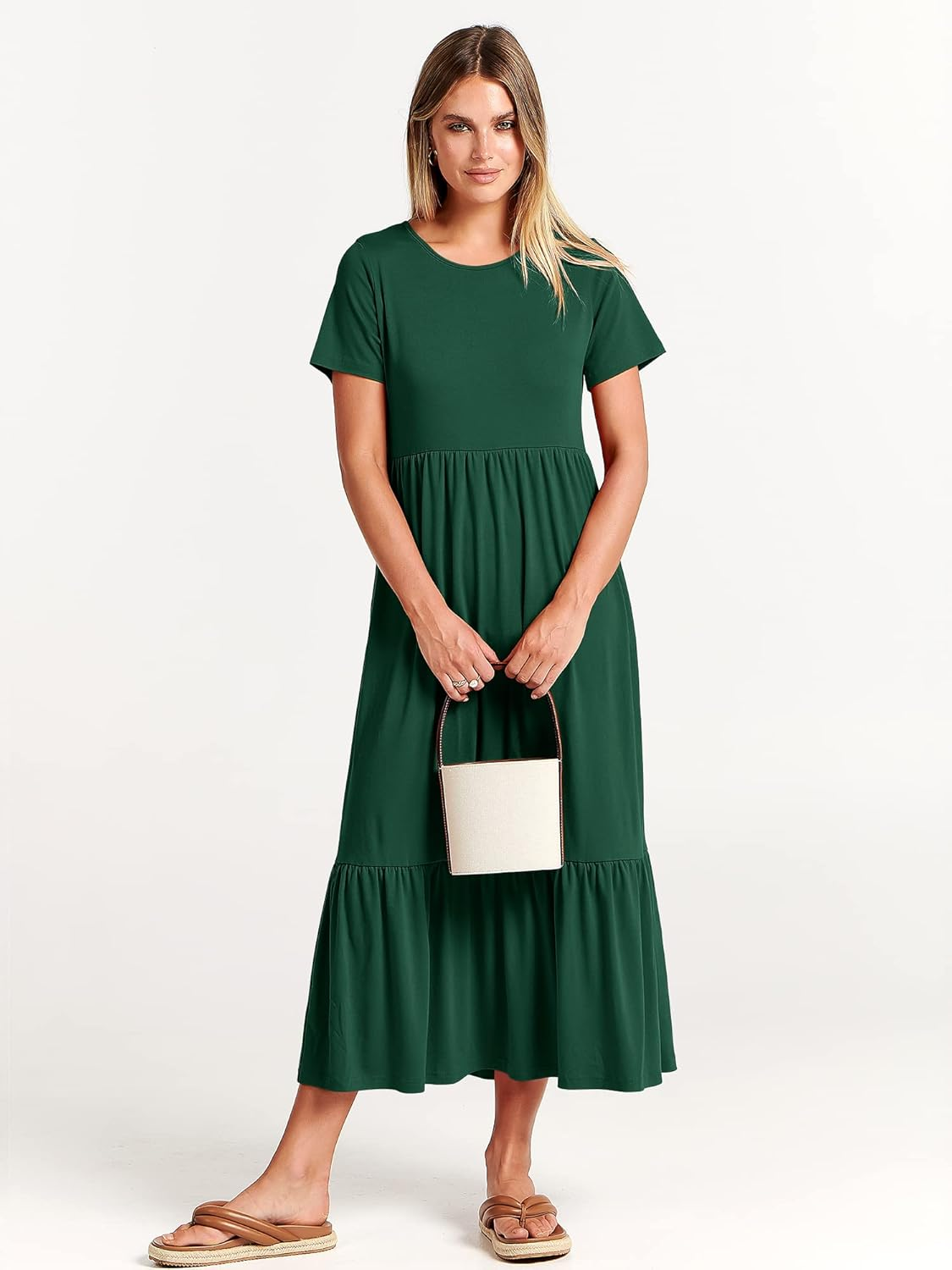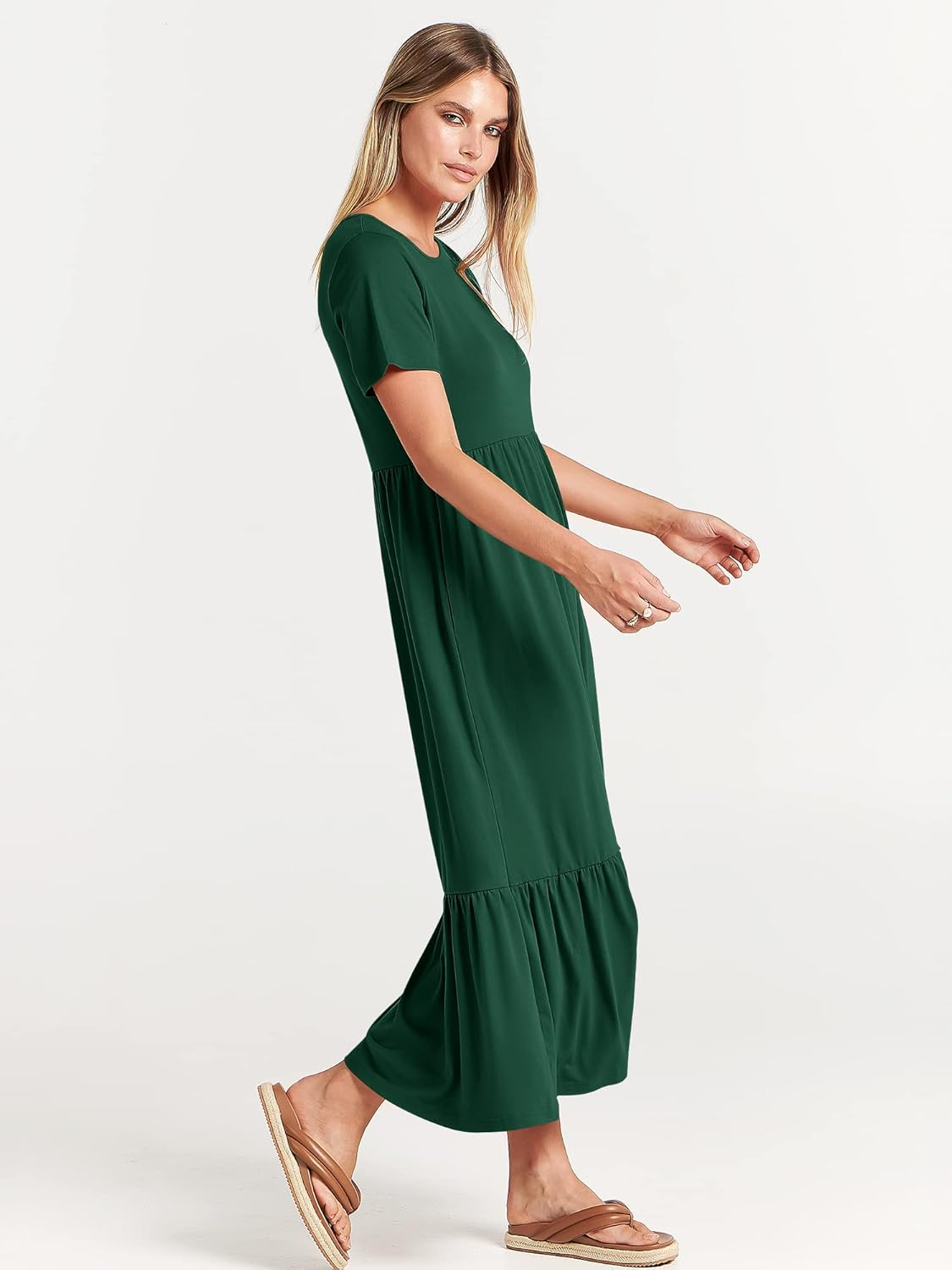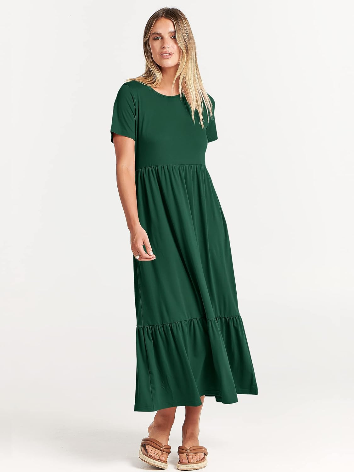 Luniro Womens 2026 Summer Casual Maxi Dress A line Tiered Flowy Short Sleeve Crewneck T Shirt Beach Travel Long Dresses