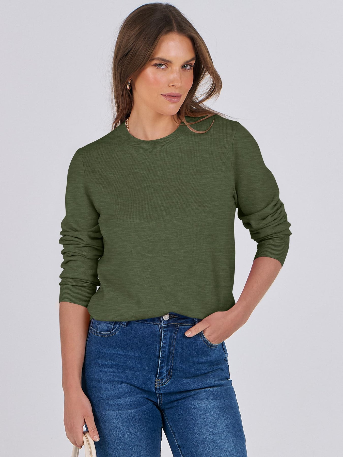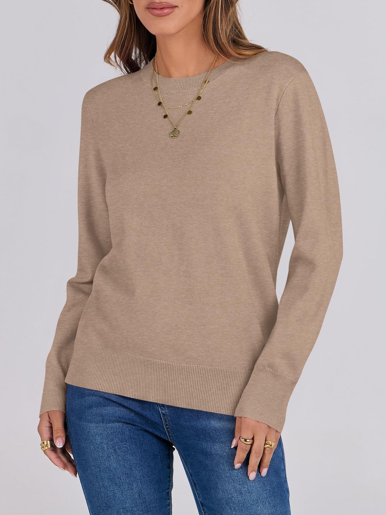 • Features - Elevate your wardrobe with our crewneck pullover sweater, designed with subtle ribbing cuffs and hem for a sleek look. Its lightweight yet warm material makes it perfect for layering with jeans, leggings, coats, jackets or boots. From casual to dressy, this versatile fall sweater is a must-have for any fashion-forward individual