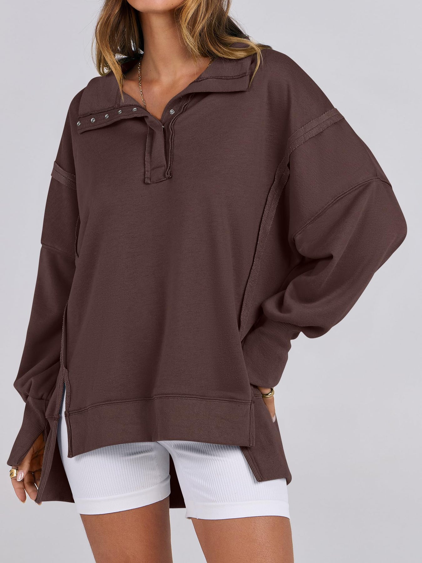 ANRABESS Women's Sweatshirts Oversized Casual Loose Button Up Henley Pullover Top High Low Split 2025 Fall Fashion Outfits